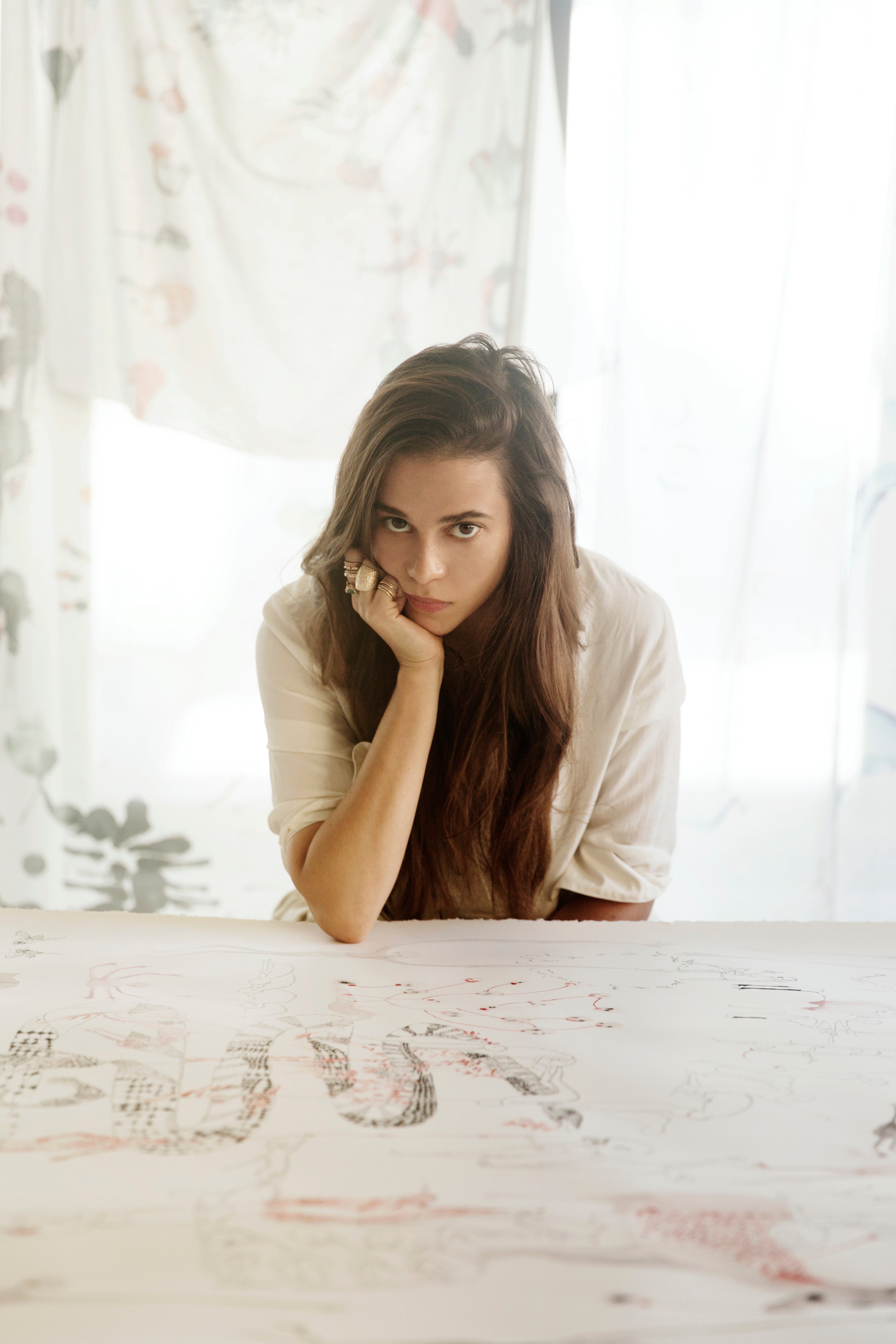 I think nothing goes through my mind, for me, that’s the beauty of creation, a kind of silence takes over and makes room for creating. I find inspiration in nature, music, paintings, films, sculpture, vintage postcards, traveling and poetry. My boyfriend Pierre, Our baby Zazie Moon, and my cat Frankie.
