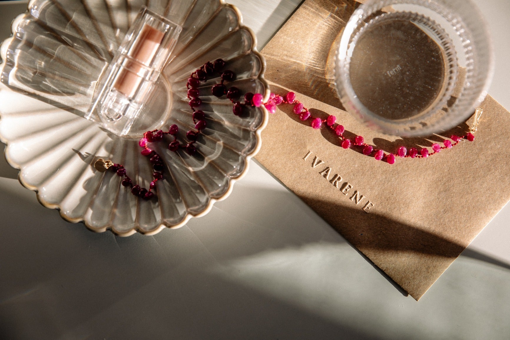 My name is Elisa Battistini, I am the Head Designer at IVARENE, a fine jewellery brand based in Paris. IVARENE essentially highlights precious and fine stones by suspending them on a silky cord. The assembly of jewels is generous, the cord disappears against the skin, the stones appear to be floating. IVARENE creations are entirely handmade in our Parisian workshop.