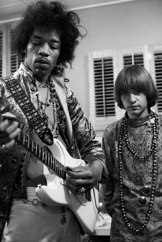 © Ed Caraeff - Jimi Hendrix plays with radio disc jockey Rodney Bingenheimer, 1967.