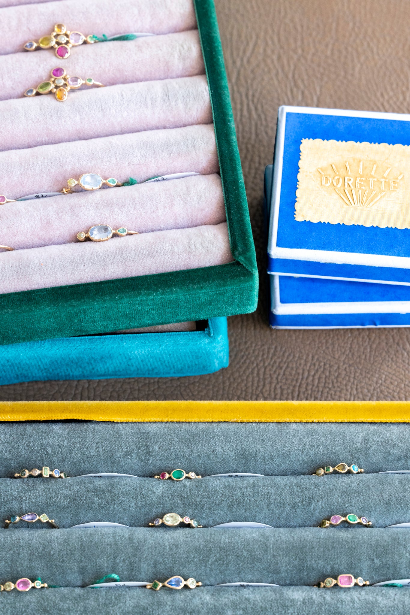 7. Dorette jewellery is recognizable for its multicolored stones that coexist in a free and poetic manner. Have you kept the same sources in India? How do you choose your stones? Do you travel to India as Catherine did?