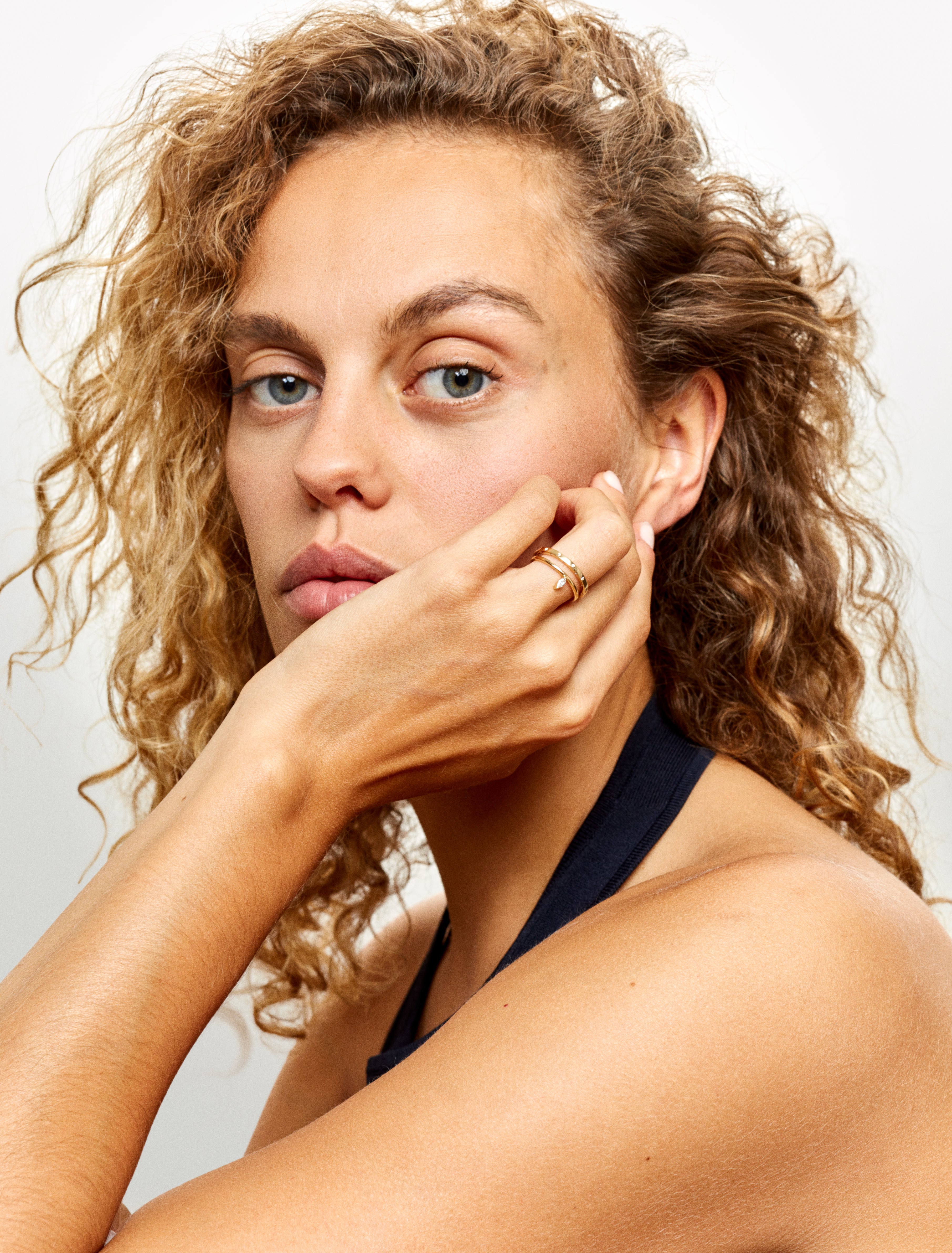 From her Paris atelier, she works with 18k recycled gold, shaping each piece with organic precision. Her marquise-cut “navette” rings, airy chains, and minimal forms reflect a modern, fluid aesthetic rooted in the everyday. Each stone is sourced and selected with care, in line with a responsible and conscious vision of the art of jewellery.