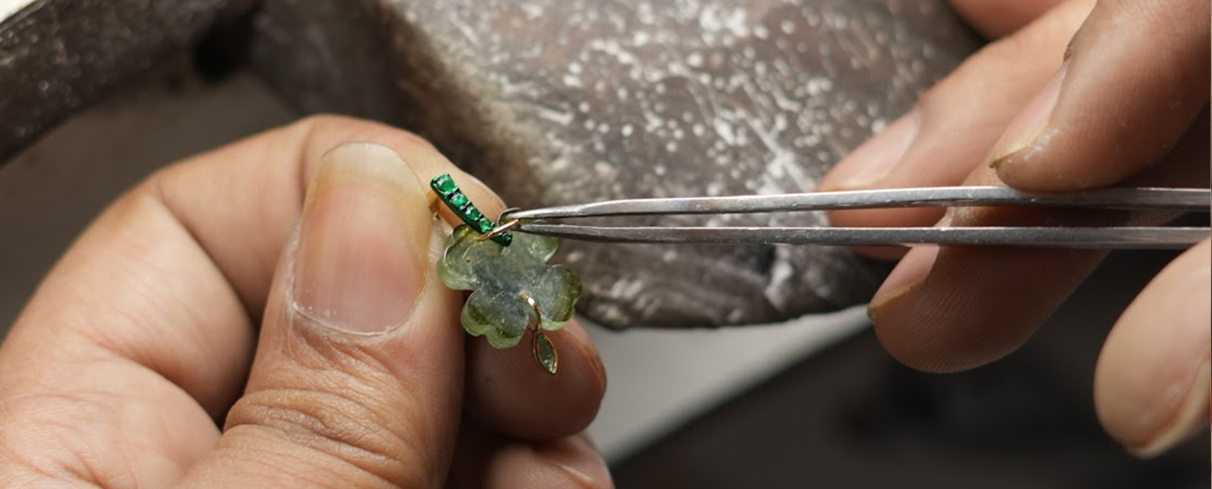 WHITEbIRD and Violette present "Lucky," a summer capsule collection themed around the clover. For this exclusive collection, Violette adapts her signature techniques and gemstones to the lucky charm.