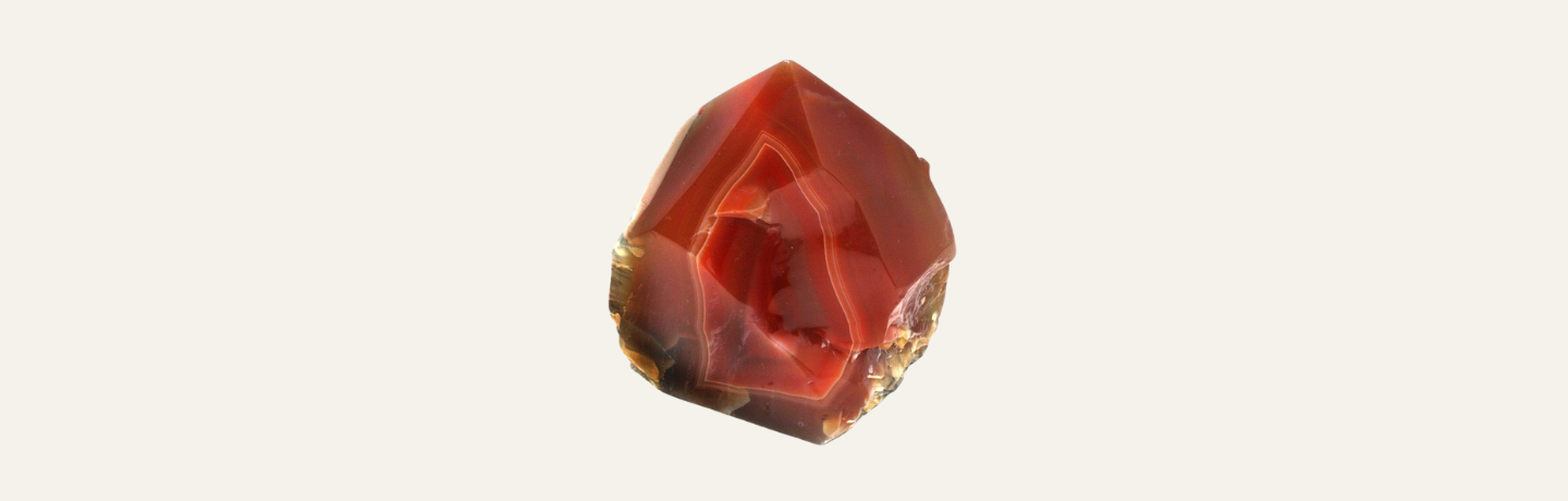 Found since antiquity in regions such as India, Brazil and the Arabian Peninsula, carnelian was widely used for seals, talismans and jewellery. Its durability and fine grain made it a favourite material for intaglio engraving in Greek and Roman cultures.