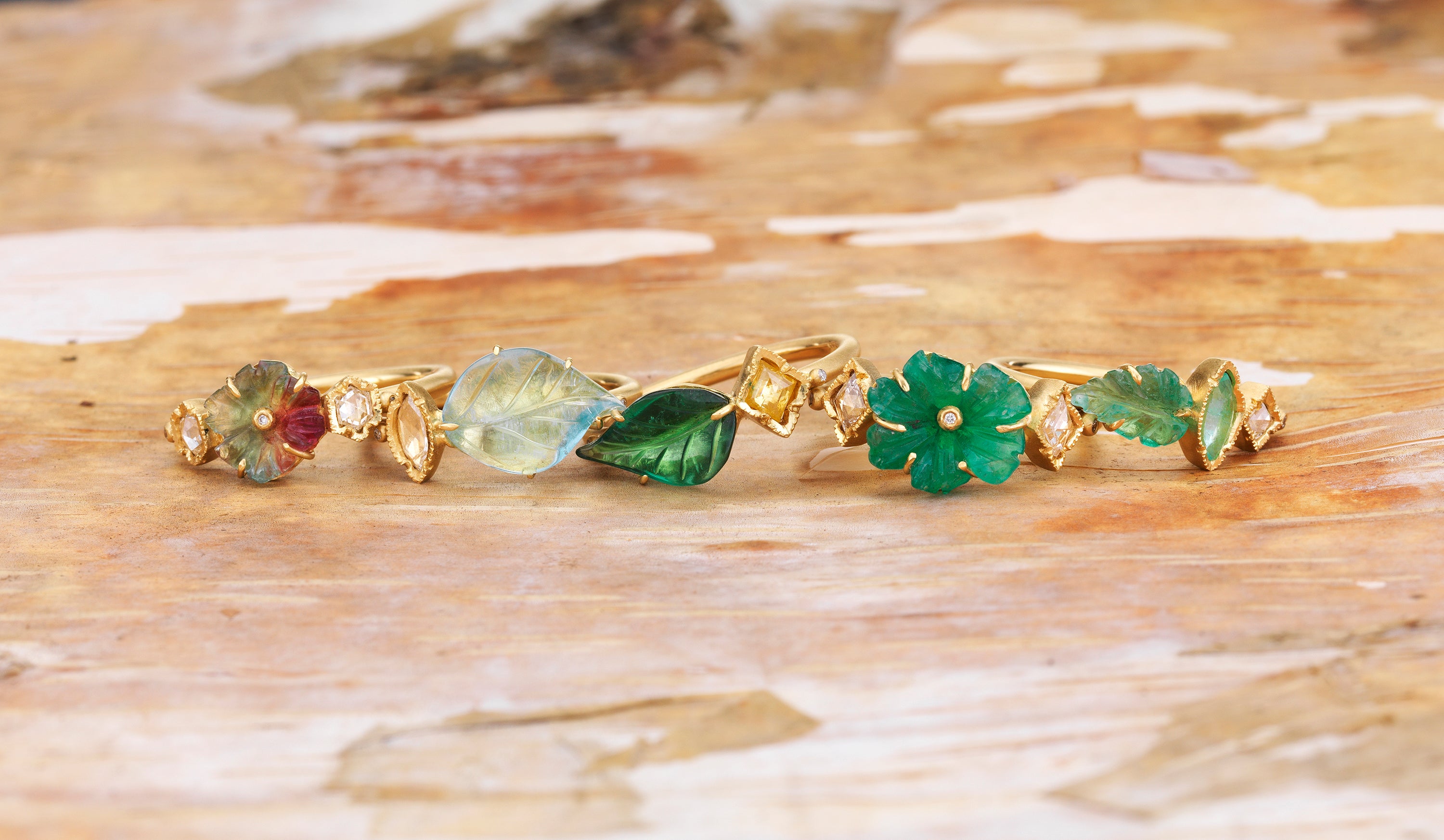 J'ai toujours été très sensible à la sensation des matériaux au contact de la peau. En tant que créatrice textile, je me souviens de toujours veiller à ce qu'un tissu procure une sensation de douceur et de mouvement. J'applique le même principe à la sensation que le métal doit avoir sur la peau. C'est pourquoi le processus de forgeage de l'or est si important pour moi. Quant aux pierres, certaines possèdent une qualité qui, à mes yeux, peut susciter des sentiments et des émotions sans qu'aucune explication ne soit nécessaire. Je pense également que certaines pierres peuvent avoir un impact émotionnel plus fort grâce à leur couleur unique, leurs inclusions et leur profondeur. Je me souviens d'une fois où je devais trouver un diamant pour une cliente. Elle souhaitait un type précis, une qualité et une forme spécifiques. J'ai trouvé trois diamants identiques : couleur, pureté et forme parfaites. Je me souviens d'en avoir regardé un, et il dégageait quelque chose de plus, une sensation indescriptible. Je savais que la cliente choisirait probablement cette pierre, et c'est ce qu'elle a fait !