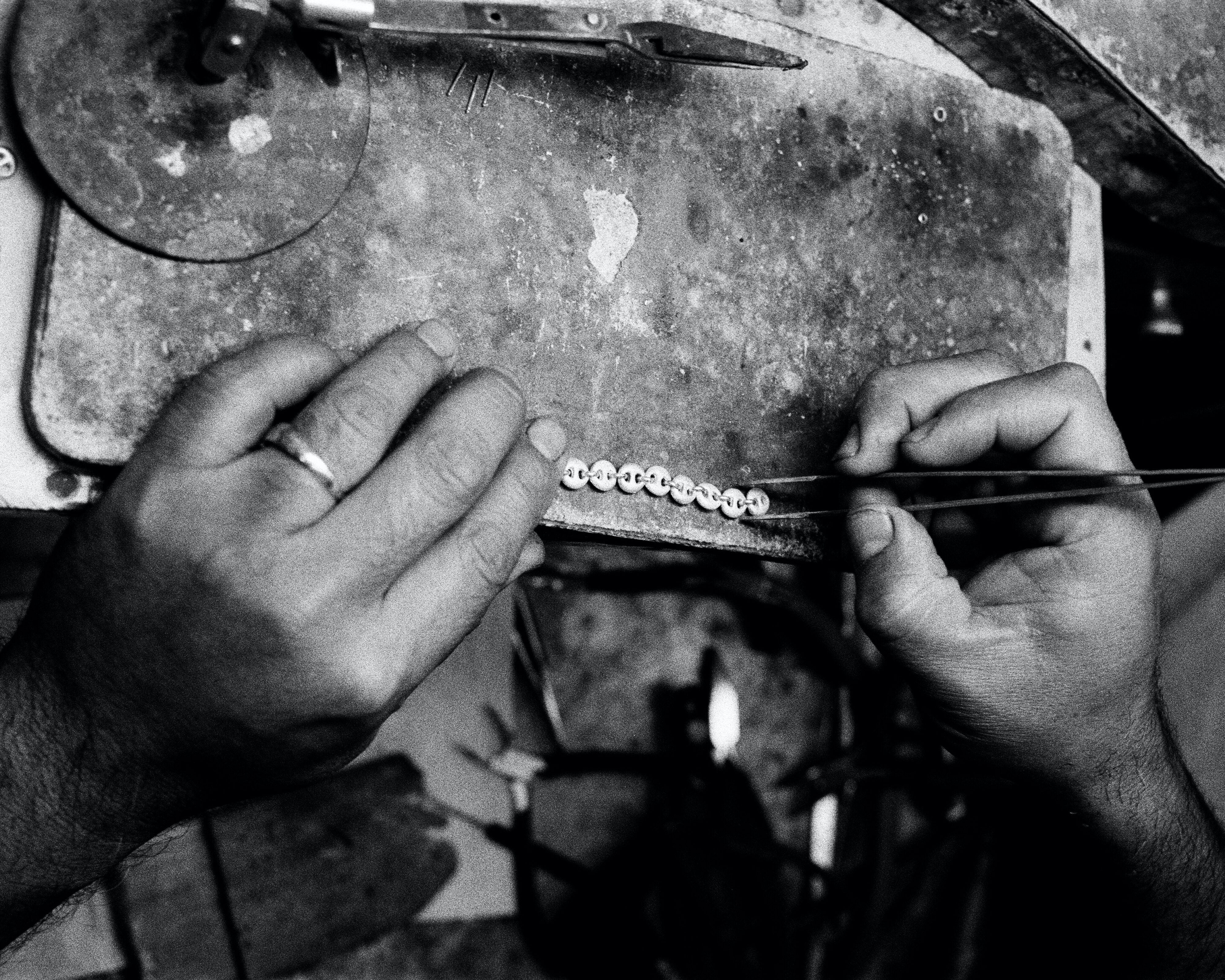 J'ai suivi une formation en design à Parsons et j'utilise toujours la même méthode que celle enseignée aux étudiants. Je vais à la bibliothèque pour consulter des ouvrages, faire des recherches, puis créer des planches, développer un thème ou un concept, puis réaliser de nombreux croquis, créer des prototypes en cire, les peaufiner, encore et encore, jusqu'à obtenir le résultat final. Je travaille avec une équipe formidable d'artisans pour développer les pièces.
